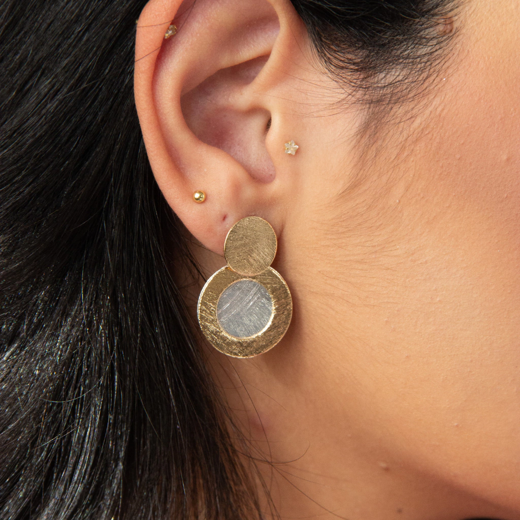 brinco escovado com mix de banhos banhado à ouro e prata Nive