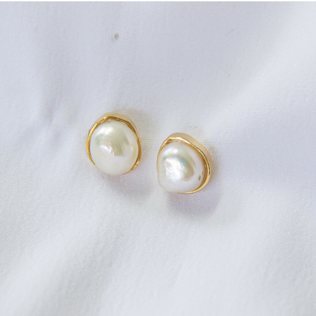 brinco solitáro de pérola barroca banhado a ouro 18k Una