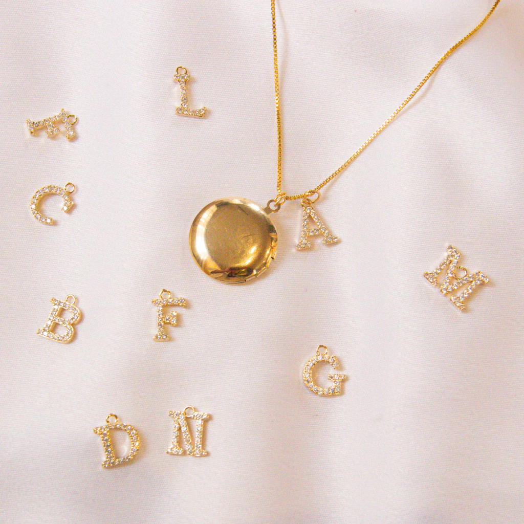 relicário com pingente de inicial com zircônias banhado à ouro 18k